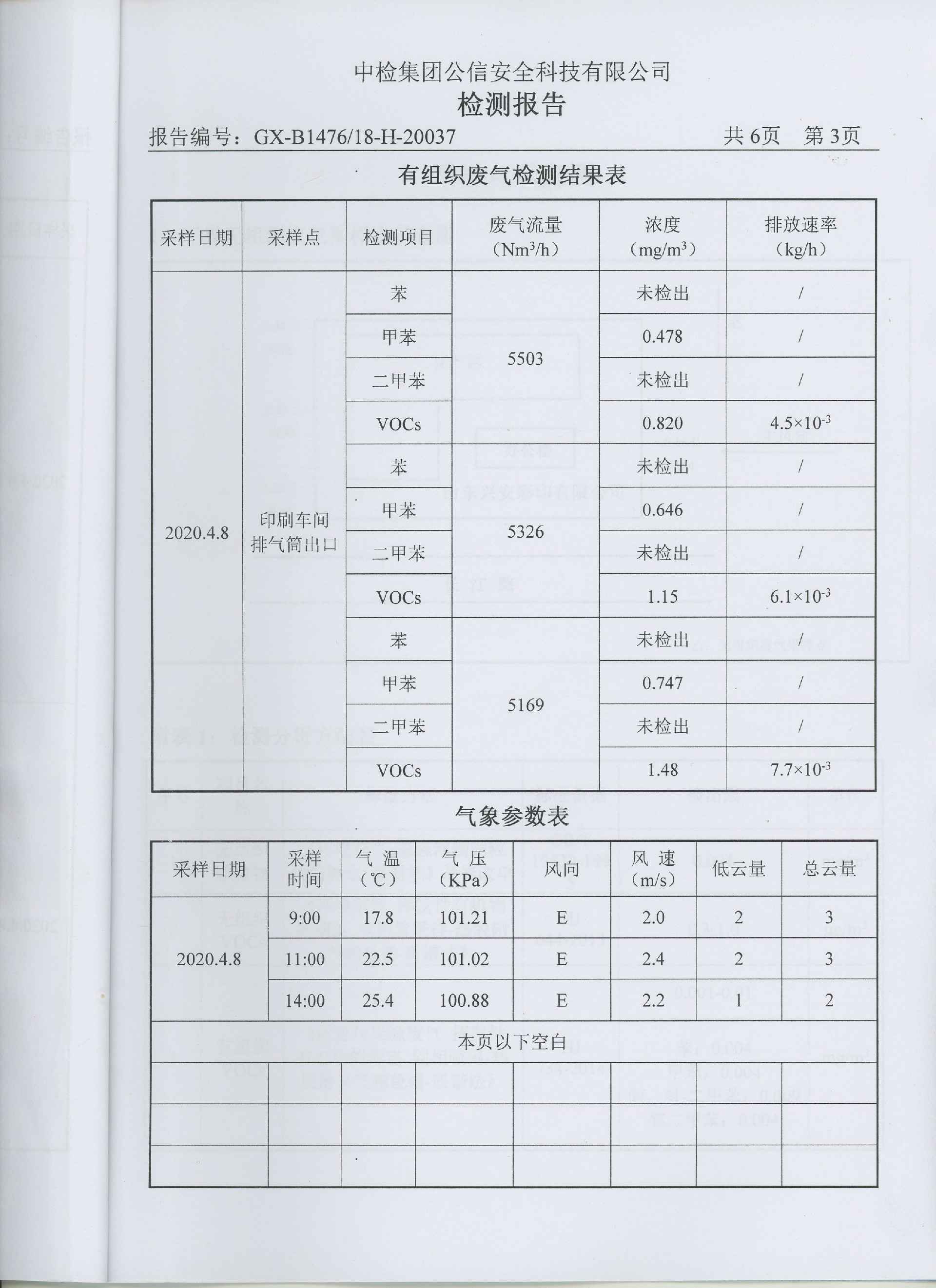 哈尔滨俊雄精品家居产品有限公司一直把环保治理工作作为企业发展重中之重,根据市区生态环境保护局要求于2017年8月份率先上了Ⅴ0Cs环保处理设备,印刷车间废气通过收集风管,进入过滤器,将空气颗粒物过滤掉,经过光催化氧化分解剩余有机废气,同时由离子氧化进一步处理残余废气,将有机废气氧化成二氧化碳和水,通过烟囱引高排。2018年2月经有关环保专家验收合格,有机挥发物排放达标。每季度都委托枣庄公信安全科技公司对公司有机挥发物废气各项指标进行检测,下图为最新监测数据: